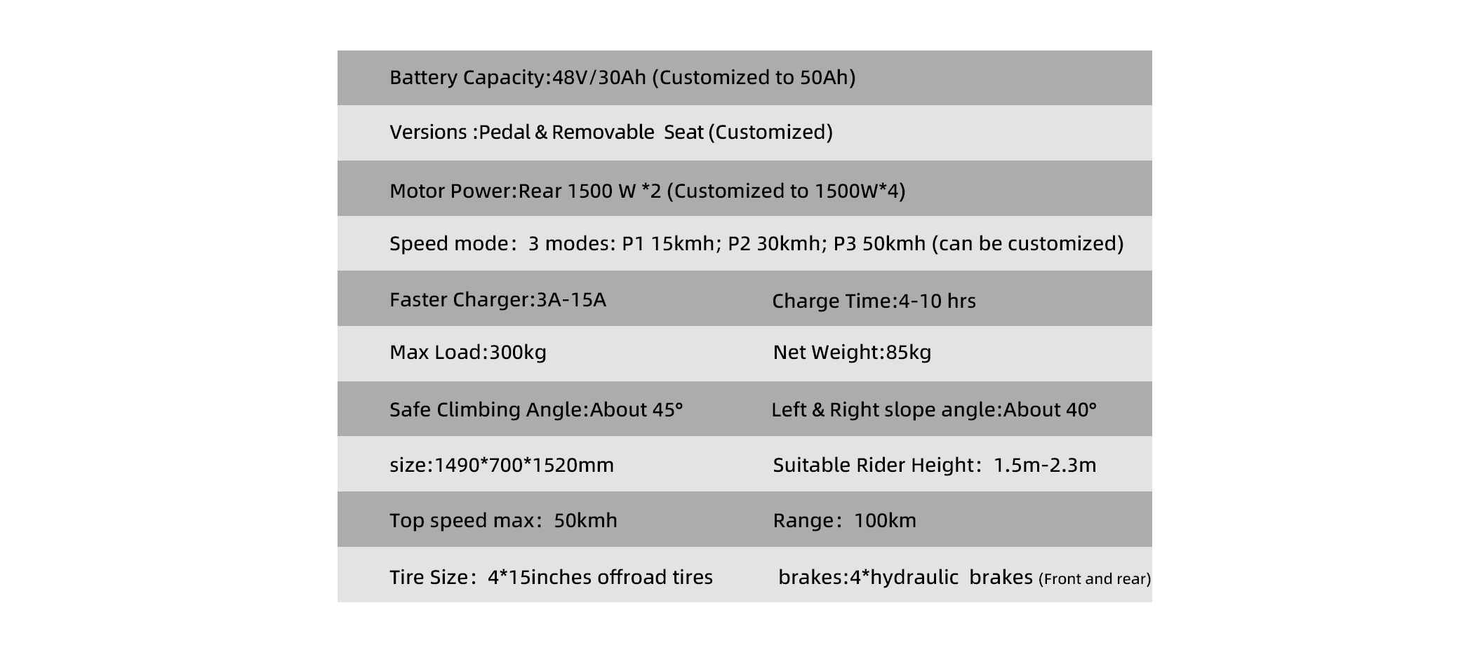 MDT-ONE is equipped with two 1500W hub motors, providing unparalleled speed and climbing ability. These powerful motors can propel the vehicle to a speed of 50 km/h and ensure a climbing capability of up to 35 degrees, allowing you to enjoy the pure joy of speed and power, greatly enhancing your riding experience.